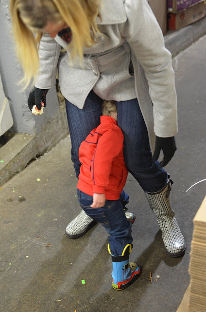 After we were rested enough, or when Westin woke up we headed out to Emily's school field trip to a local grocery store that has its own farm around it. I found it to be quite interesting.Westin was mostly interested in running around and Matt wanted to take pictures of every little thing on the trip. I loved the weather while there. I was afraid of being so cold but it was fun to be wearing jackets and not getting hot after a while and to wear our rain boots!